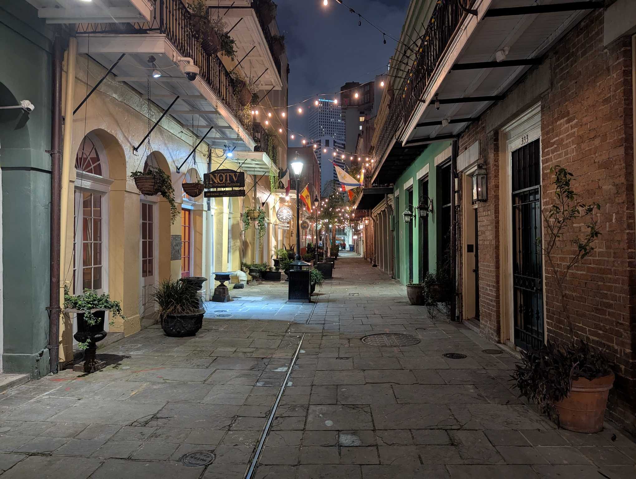 So is the architecture. The French Quarter dates to the Spanish period, when much of it was rebuilt after massive fires. The streets are narrow, many of the buildings are gorgeous, there are courtyards hidden away everywhere. And it’s big. I tweeted: